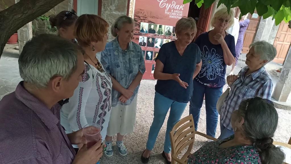 Пришло не так много людей как планировалось. Но самая драгоценная группа для нас в лице старшего поколения экскурсоводов и краеведов, можно сказать, потомственных экспертов в области истории нашей Судакской долины, оказалась на своём почётном месте.