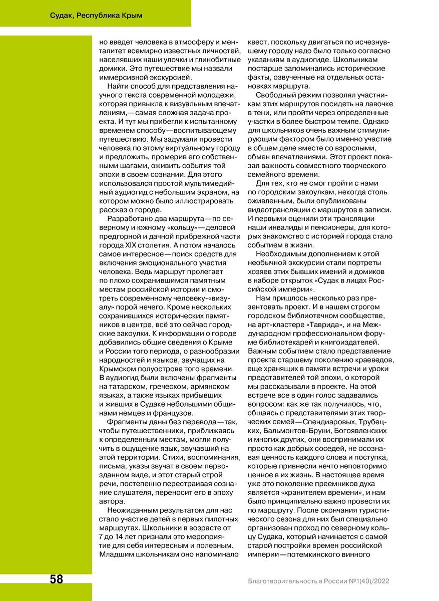 Наш проект "История с географией" попал в число социальных проектов, отражённых в журнале "Благотворительность в России" - органе Национального благотворительного Фонда России" (№1 (40)/2022). Один экземпляр журнала попадёт в нашу городскую библиотеку.